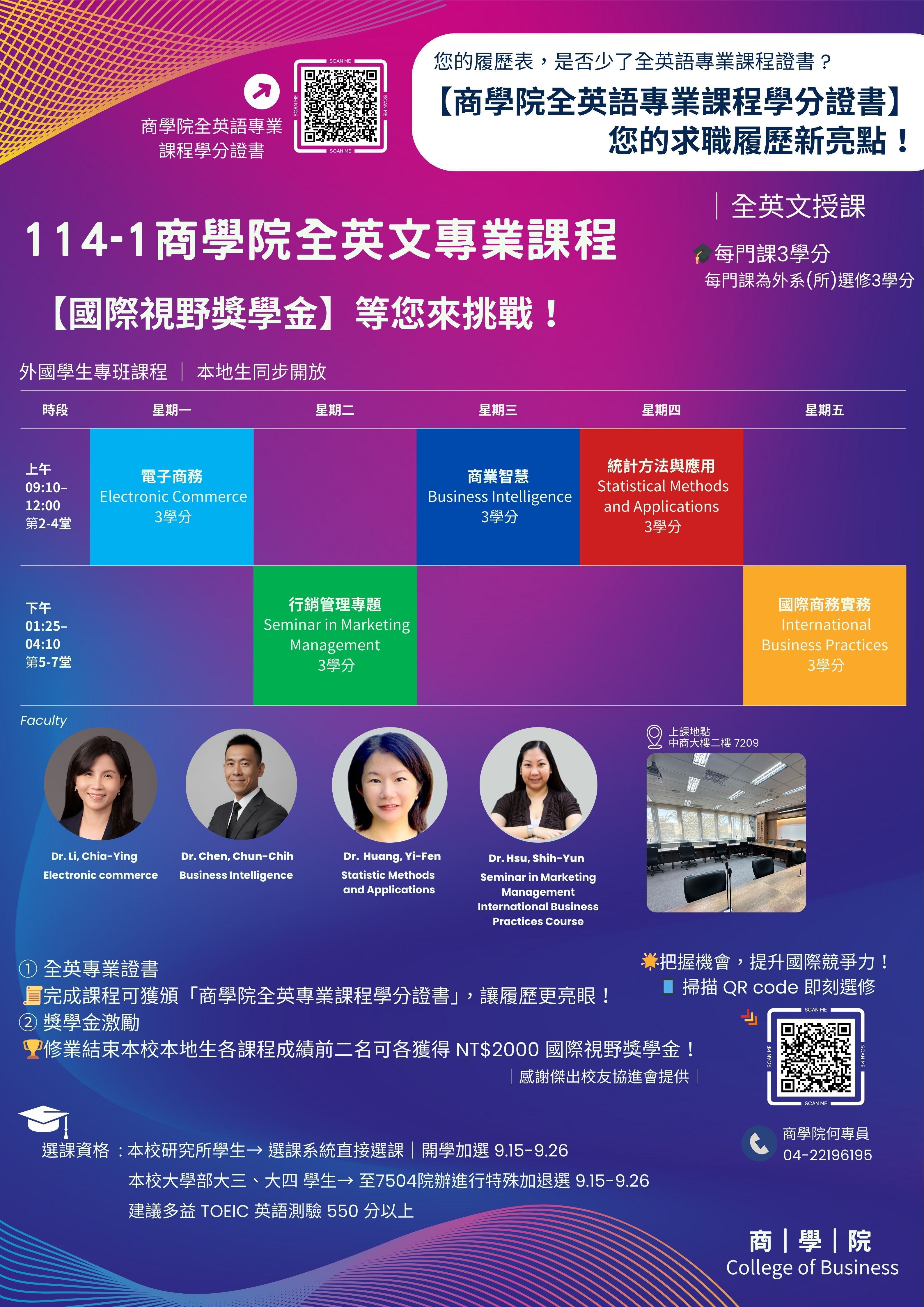 🎓課程修畢由商學院頒發【商學院全英語專業課程學分證書】(列入外系選修學分),成為您的求職履歷新亮點!