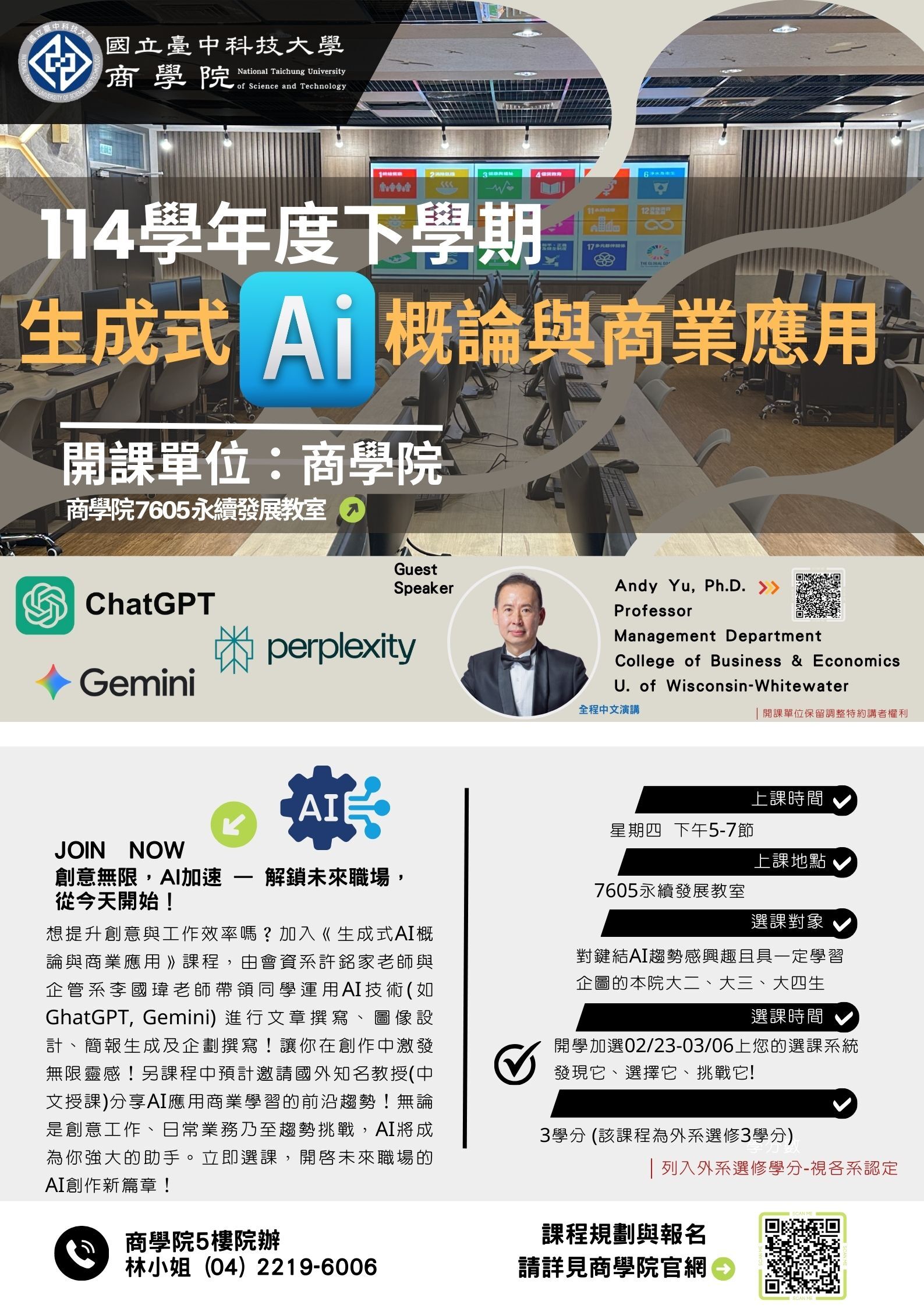 商學院「生成式 AI 概論與商業應用」課程(114下) 12/1-12/14開放學生預選!