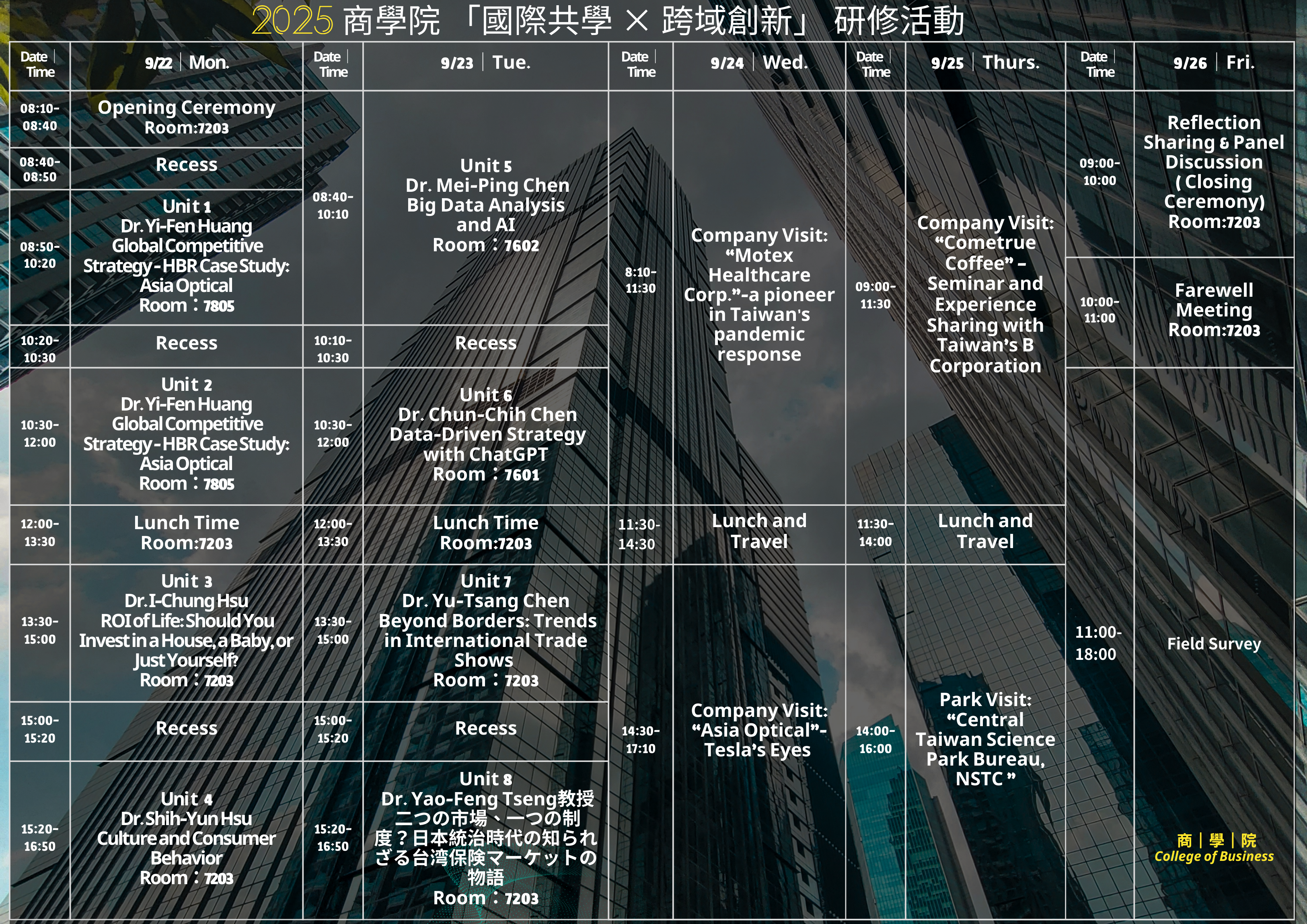 商學院「國際共學 × 跨域創新」研修活動 │ 2025.9.22-9.26